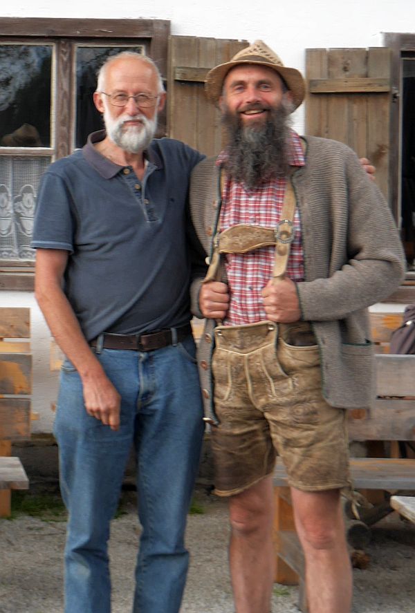 P1740880 June 16, 2017 600 × 887 Auerhütte am Seewaldsee Me and Tom Strubreiter…I need some of those shorts, don’t you think? He also showed us his new leather trousers made of his own goats! Optimized print or PDF