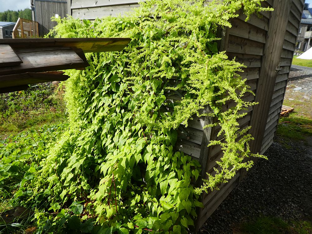 P1060160 July 12, 2017 1000 × 750 Kerstin’s polyculture gardens! Entering Kerstin Lye’s garden and I’m greeted by a familiar face, the climbing spinach from the Caucasus (Hablitzia tamnoides) is happy here in Hurdal..and where Habbies are Happy, I am habby too ;) Optimized print or PDF