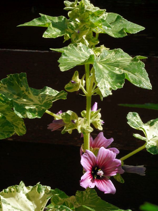P1760481 August 3, 2017 600 × 800 Edimentals in the garden; early August 2017 Lavatera arborea “Variegata”, tree mallow Optimized print or PDF