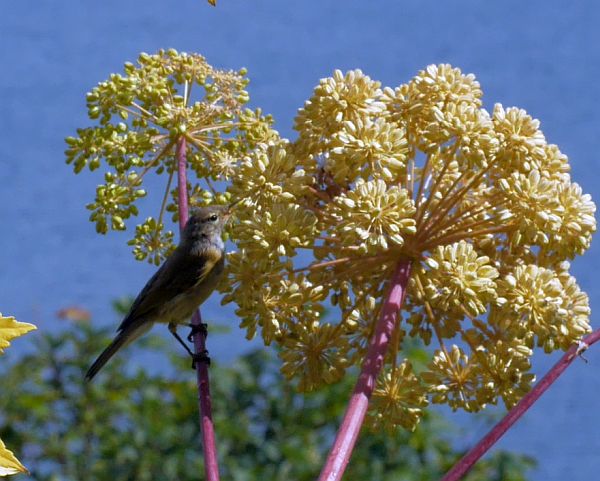 P1760486a August 3, 2017 600 × 481 Edimentals in the garden; early August 2017 Who are you sitting in my Angelica atropurpurea? Fieldfare / gråtrost? Optimized print or PDF