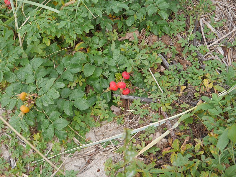 P1780197 September 3, 2017 800 × 600 Allinge talk and walk Rosa rugosa also has multiple uses, shoots, flowers, hips.. Optimized print or PDF
