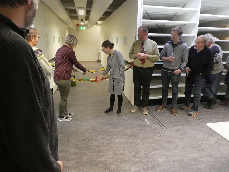 P1080311 November 30, 2017 800 × 600 Opening of the new Trondheim Herbarium TRH Cutting the double helix to open the herbarium needed two pairs of scissors, of course! Optimized print or PDF