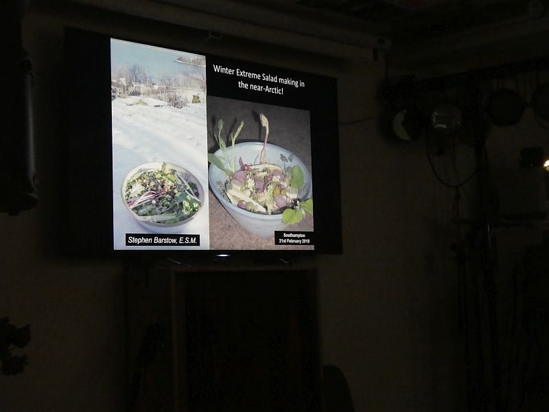 P1090775 February 22, 2018 800 × 600 Hampshire and the Hungry Gap talk! The talk was based around talking about the 140 ingredients that I used in my March 2017 record salad! Optimized print or PDF
