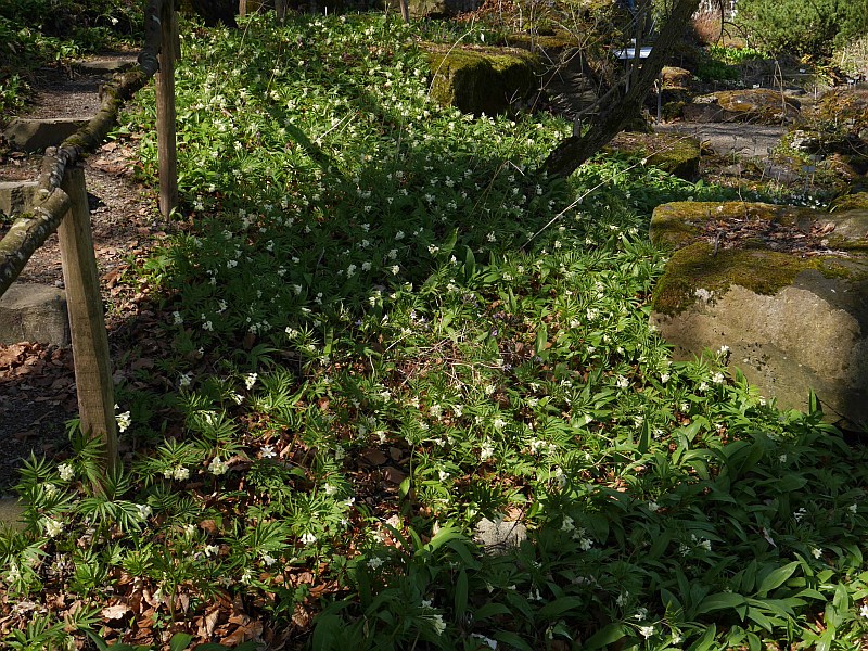 P1820035 April 23, 2018 800 × 600 With Mountain Gardener Joe Hollis in the Zurich Botanical Gardens There was a great display of native Swiss Cardamine kitaibelii in the woodland rock garden Optimized print or PDF