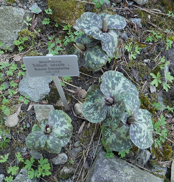 P1820110 April 23, 2018 600 × 630 With Mountain Gardener Joe Hollis in the Zurich Botanical Gardens A familiar one from Joe Hollis’ neck of the woods, Trillium sessile Optimized print or PDF
