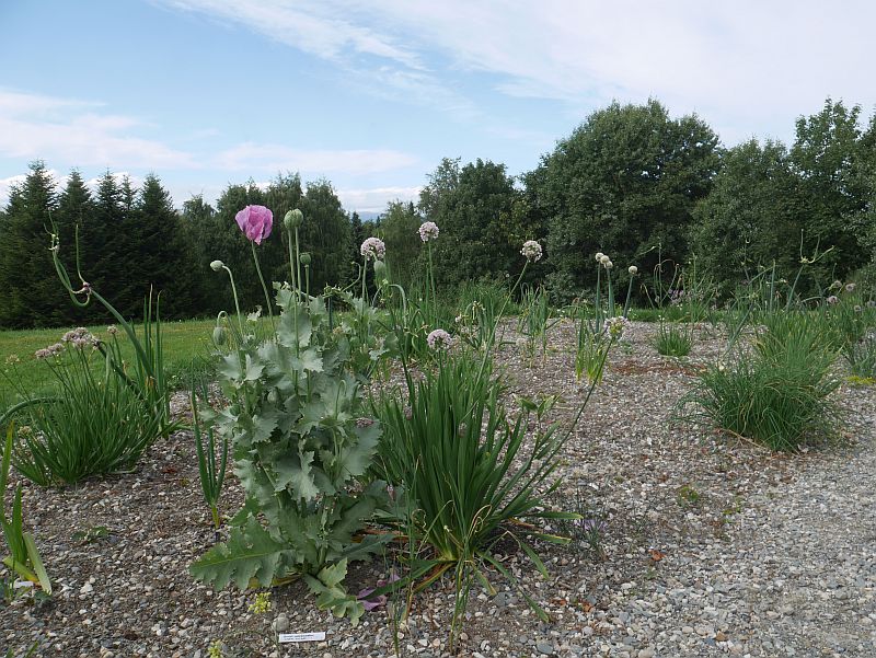 P1850288 July 23, 2018 800 × 601 The Chicago onion garden at Ringve on 23rd July 2018 A giant opium poppy seems to have found its way from my garden presumably! A shame to weed it out! Optimized print or PDF