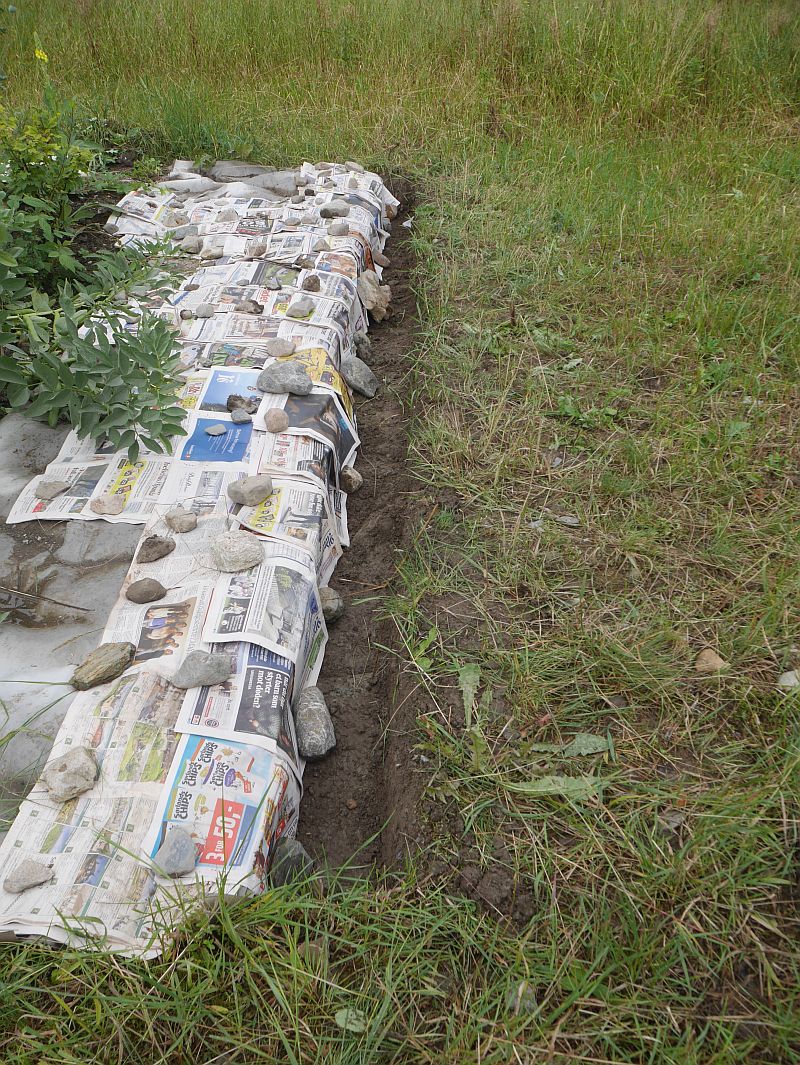 P1850918 August 10, 2018 800 × 1065 Væres Venner update; 10th August 2018 The extension bed is underway…. Please let me know if you want to do some useful training and learn the age old technique of bastard digging….the newspaper will stop the perennial weeds entering the new area! Optimized print or PDF