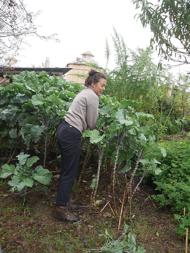 P1880092 November 7, 2018 800 × 1065 The Holy Grail Kale and the Janas Ecovillage gardens! Picking older leaves for the animals Optimized print or PDF