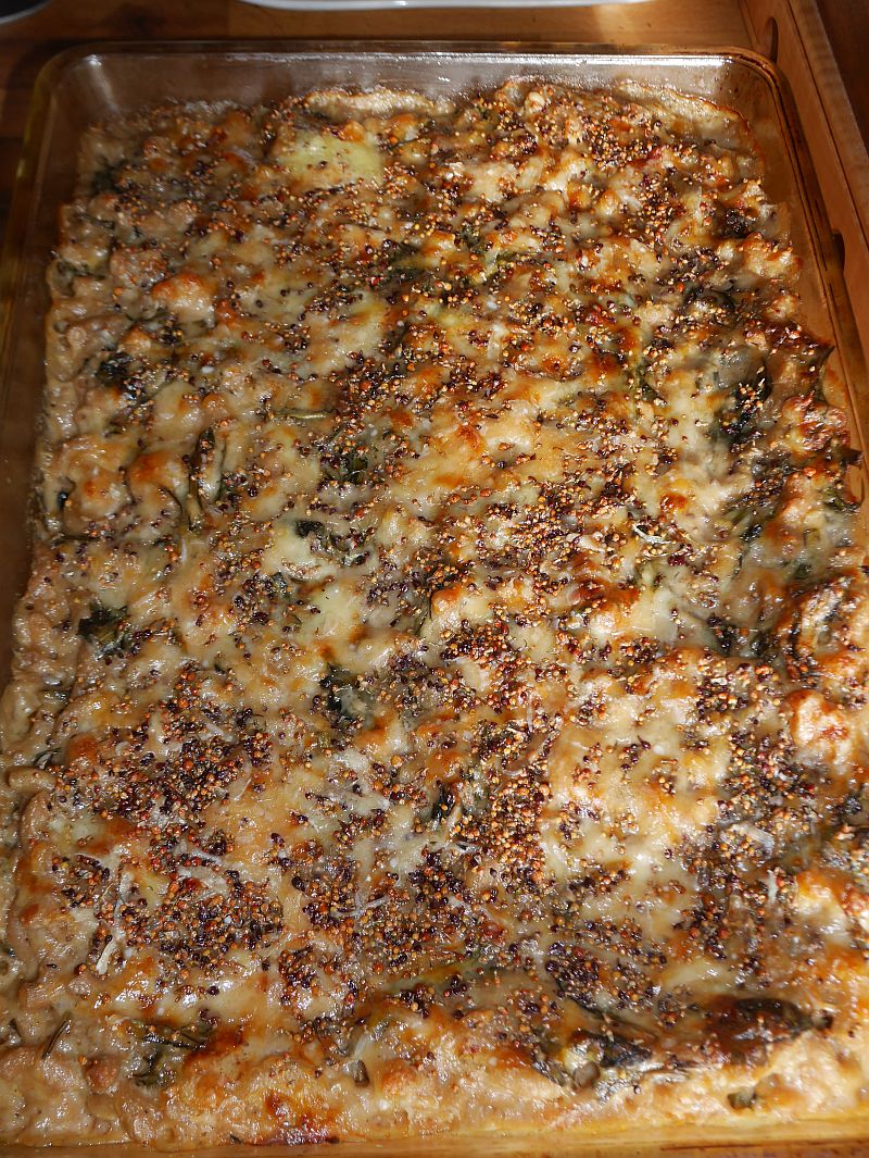 P1950144 April 30, 2020 800 × 1065 Habby-Dandy MacCheese The finished mac cheese with alpine bistort bulbils on top Optimized print or PDF