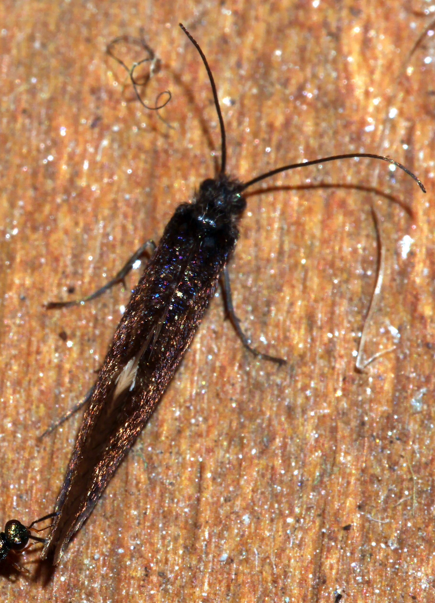 P2120808 April 18, 2023 1823 × 2527 Moths in The Edible Garden 241. Purplish birch-miner or the large birch purple / purpurmøll (Eriocrania semipurpurella or Eriocrania sangii) Optimized print or PDF
