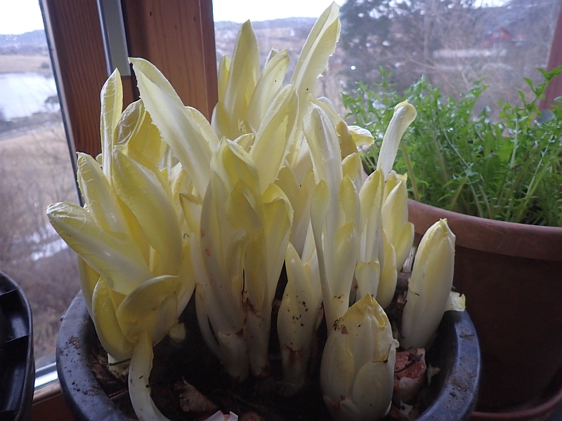 P1181743 January 18, 2025 800 × 600 Mid-January Salad Chicory / sikori “Witloof Væres Venner -line” Optimized print or PDF