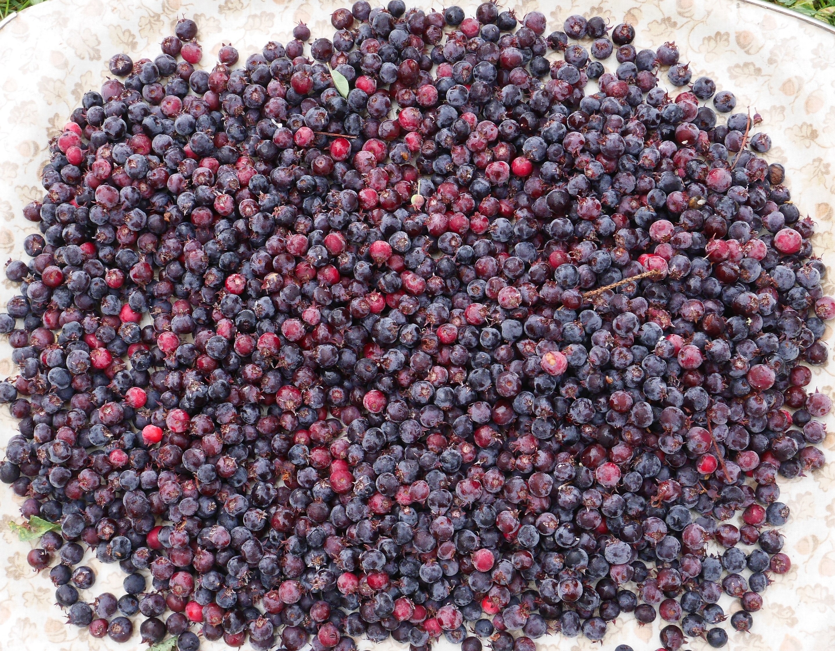 P1620583 July 28, 2016 2877 × 2242 Cycle home forage! The haul from my cycle ride home (arriving home at 10:30 pm with only bilberrries for dinner!) apart from, bottom left, which are saskatoon berries picked in my garden! Optimized print or PDF
