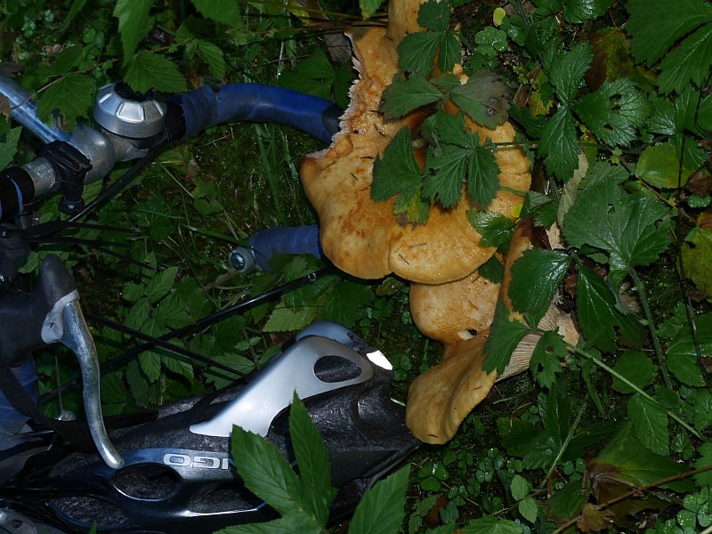 P1660738 October 4, 2016 800 × 600 Long cycle forage to the shops Lactarius scrobiculatus (svovelriske) can be large. This milkcap is considered inedible here and is very acrid.. Optimized print or PDF