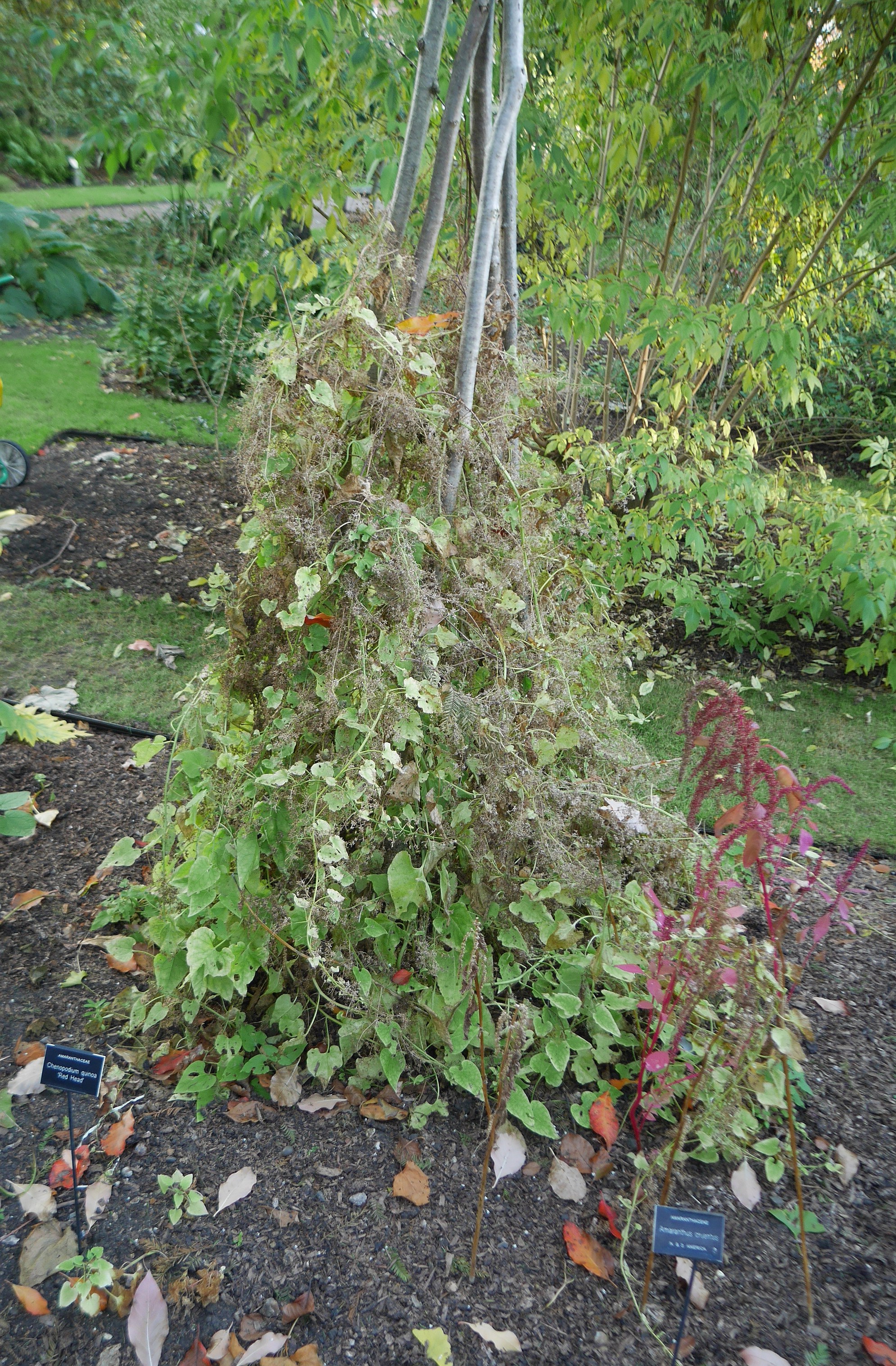P1670896 November 4, 2016 1990 × 3035 Unusual edibles at Chelsea Physic Garden Hablitzia tamnoides in the systematic beds…no mention of it as an edible plant :( Optimized print or PDF