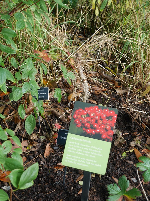 P1670921 November 4, 2016 600 × 800 Unusual edibles at Chelsea Physic Garden Oplopanax horridus from Western North America is found in the understory of old growth forest and has edible spring shoots Optimized print or PDF