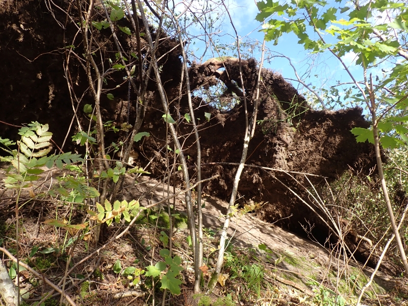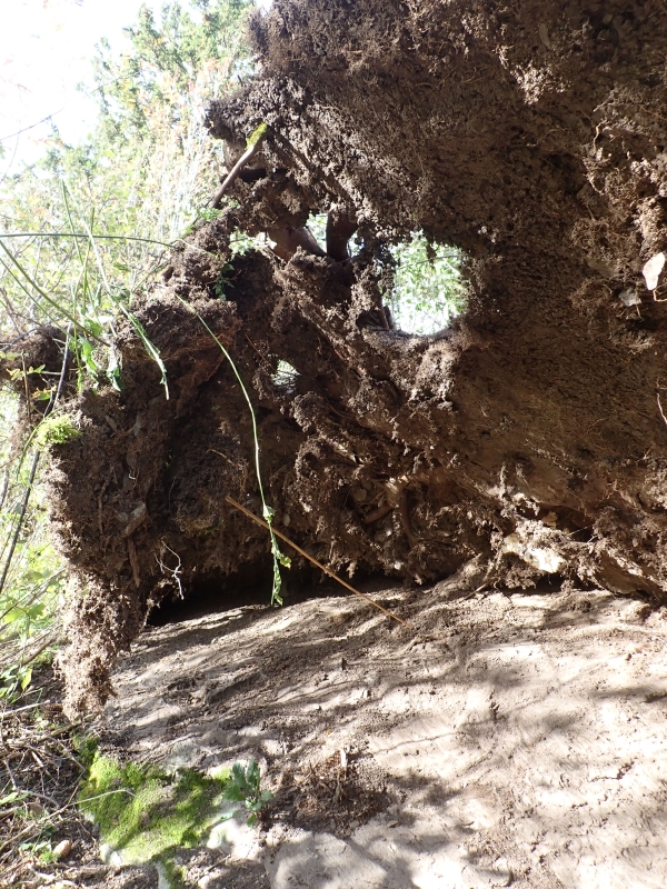 Inspecting this morning! Roots had snapped and a 6-7m wide strip had peeled back to the rock revealing how little soil the roots were growing on!