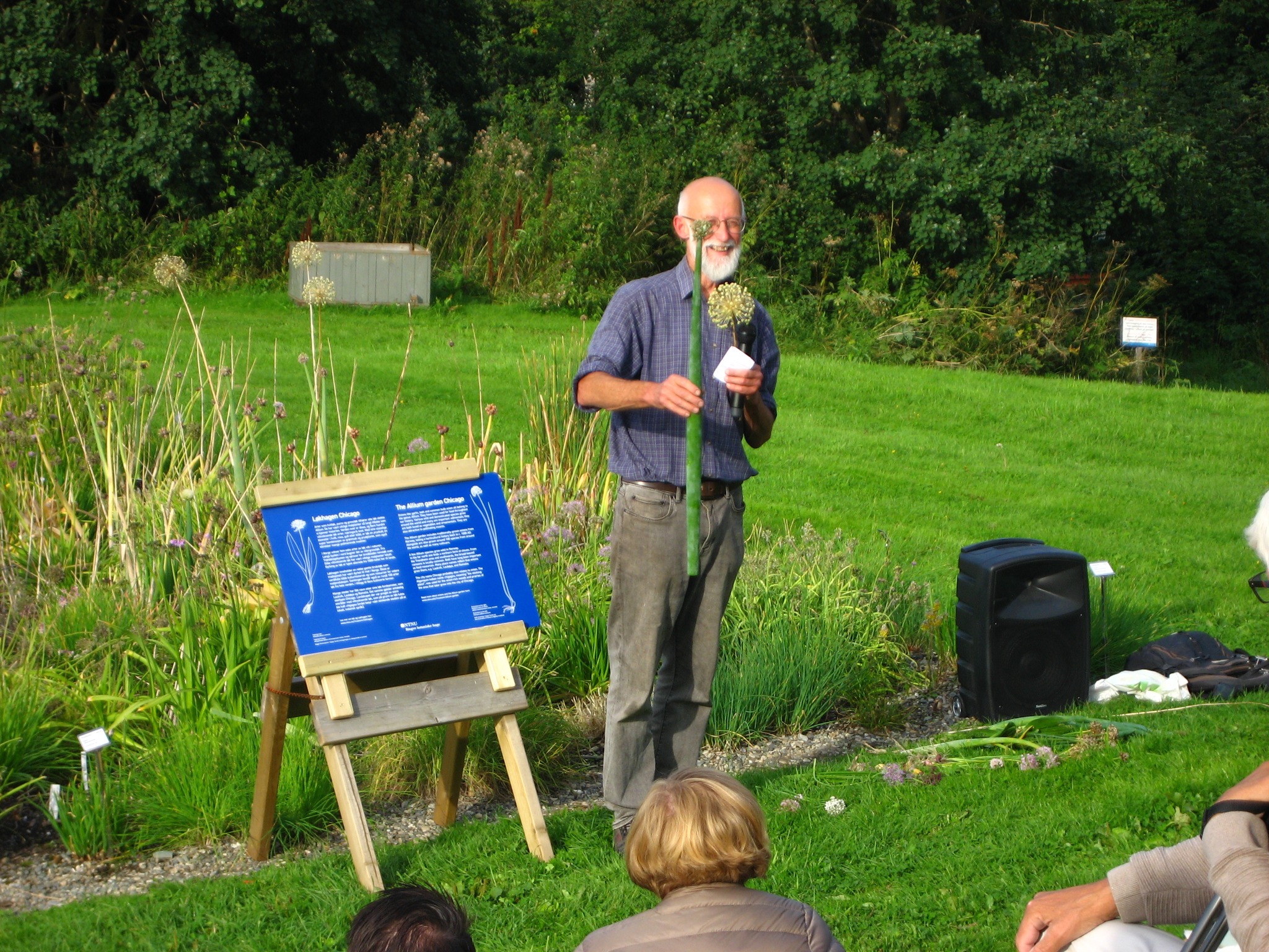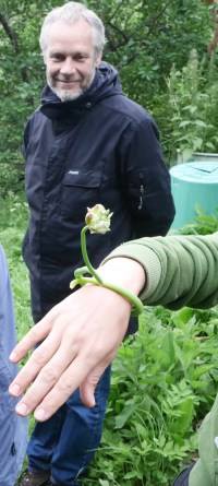 -The concert series at Atelier Ilsvika is acoustic, so a perfect event for the Alliophone (the seed head of Allium stipitatum) which I presented to Marianne! Here I am at the opening of the onion garden at Ringve equipped with one of these: