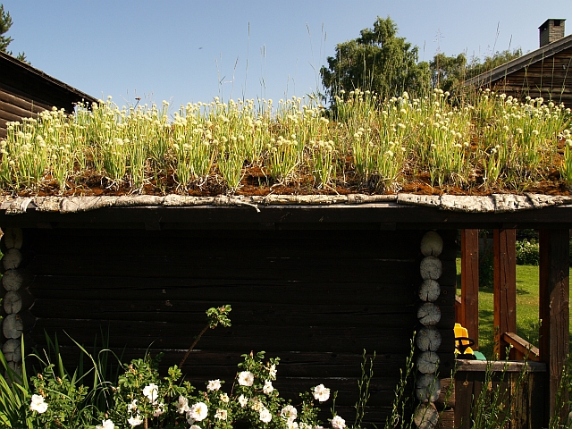 -Norway has surviving roof onions (takløk) in the Gudbrandsdalen valley grown traditionally on turf roofs to protect against fire and to provide onions for scrambled egg in the spring. This is Welsh onion (piepløk) Allium fistulosum from Siberia, but they have been evolving for such a long time on these roofs, self-sowing each year, that some botanists consider it a new species which could be called Allium gudbrandsdaliensis!