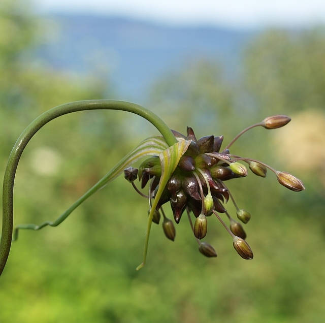 -Chicago means “stinking place in the woods” in one of the local indigenous languages (built in an area originally huge stands of Alliums including Chicago onion – prærieløk; Allium cernuum) – see my daughter’s badge! – There are around 930 Allium species in the world and many are wild foraged and domesticated locally and worldwide for food. Almost all are from the Northern hemisphere, with a few in South America and one in South Africa where close relatives the society garlics (the genus Tulbaghia) are found and can be seen in flower in autumn in the Onion Garden, but are overwintered inside.