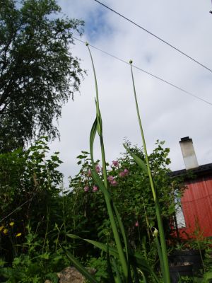 -The Vikings grew onions in their enclosed onion gardens (laukgard); we don’t know which species they grew but it is likely that they cultivated several including one known as Geirlauk (old Edda); the boy’s name Geir literally means a spear, so this was an onion resembling a spear. Geirlauk has the same linguistic derivation as garlic (old English gārlēac). There are at least two candidate species for the original geirlauk (there is no evidence they had real garlic, although it’s not impossible). My best guess is that it was sand leek / bendelløk (Allium scorodoprasum) which is up to 2m tall and slender, more spear-like than garlic. It is often found today near where Viking settlements had been in Scandinavia.