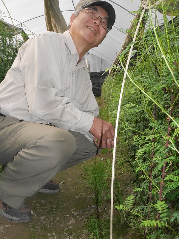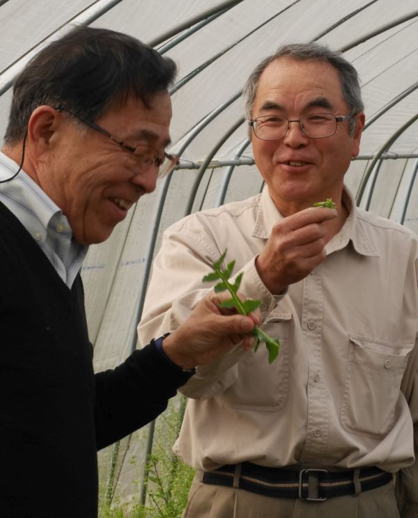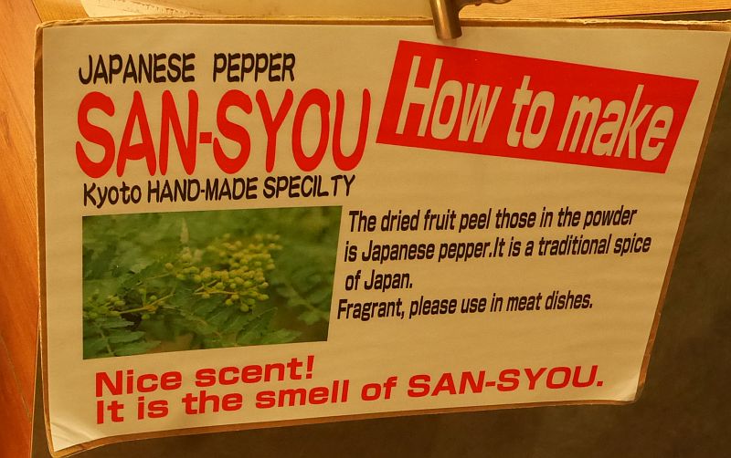 As I’ve acknowledged in various other posts from my spring 2016 study tour to Japan I am forever grateful to Aiah Noack of Naturplanteskolen in Denmark for organising the tour of sansai farms near to the city of Toyota and for the on-the-ground assistance and translation by her plant breeding friend, Teruo Takatomi, and colleagues who had kindly offered to organise a tour of farms for a couple of days. If you’re not familiar with the term sansai, it literally means mountain vegetables, previously wild foraged vegetables nowadays farmed for markets near the urban areas. Before meeting Teruo we spent a couple of days in Kyoto and visited the Nishiki market to familiarise ourselves with local vegetables. Here, the importance of sansho (san as in sansai meaning mountain and sho, pepper) or Japanese pepper (Zanthoxylum piperitum) is in the Kyoto cuisine was obvious with several shops profiling this spice in addition to restaurants and fast food outlets selling sansho dishes (pictures below). See also my blog post celebrating my first harvest in Malvik: https://www.edimentals.com/blog/?p=34090