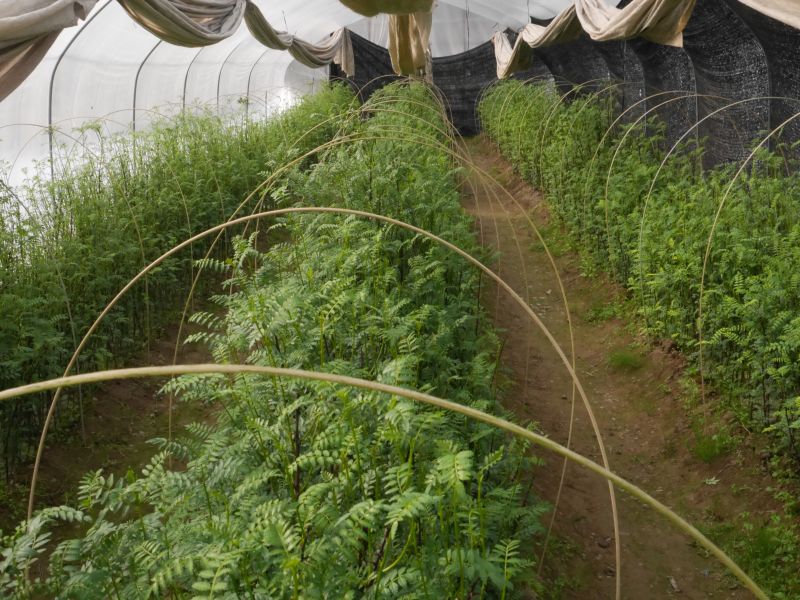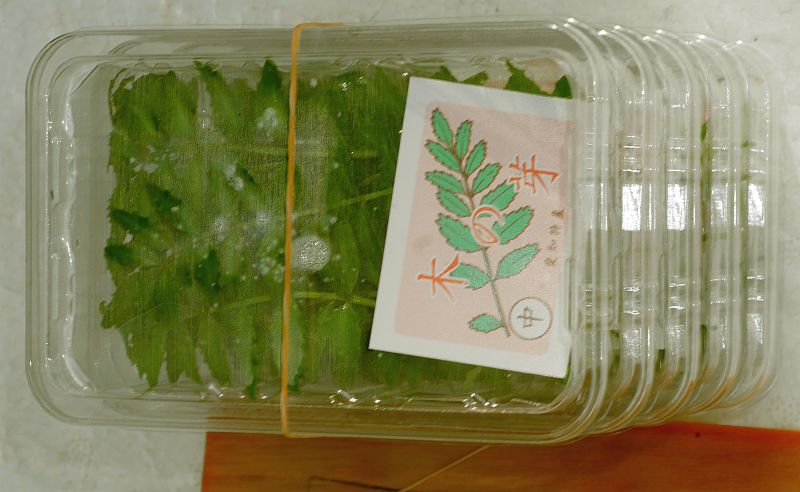 The genus Zanthoxylum includes some 250 species of deciduous and evergreen trees, shrubs and climbers in the citrus family, Rutaceae. Zanthoxylum piperitum is called sanshō (山椒) in Japan and chopi (초피) in Korea. I picked up a Japanese book “I want to know more about Kyoto Vegetables” by Koji Ueda which explains the superiority of the local sansho grown on Mt. Kurama about 15 km north of the city. Translating from the book “Some may question the inclusion of sansho berries among Kyoto vegetables, but for Kyoto residents, who strive for the softest vegetables, sansho berries are an essential Kyoto vegetable. Hatsuhashi and senmaizuke are ubiquitous souvenirs throughout Kyoto, but recently, chirimen sansho has become a staple, almost replacing senmaizuke. This is a tsukudani (simmered dish) of dried small sardines and sansho berries. Chirimen sansho’s success hinges on the tenderness of the sansho berries and their skin. In the past, it was a secret recipe passed down from mother to son from each family. When it comes to sansho berries with soft flesh and skin, the first thing that comes to mind is the sansho berries near Mount Kurama in Sakyo Ward, Kyoto City. The type of sansho is called Asakura sansho, and it’s grown in Tajima Province (Hyogo Prefecture).” The city of Asakura is in Fukuoka Prefecture and here this special thornless variety of sansho originated. The book proceeds to explain that after choice of variety, the next most important thing is when the berries are harvested. If harvested too early they are soft, but break down when cooked in tsukudani. Harvested too late, the skin becomes hard and the berries turn black, turning the entire fruit into a hard, unappetising substance. When berries turn black greengrocers call it “the ohaguro has got in.” (see https://en.wikipedia.org/wiki/Ohaguro). To ensure a good result, you need to use before “the ohaguro has got in”. Other parts of this shrub are also used, including the young leaves, flower buds, flowers, bark and young fruits. One of the sansai farms we visited specialised on producing the leaves, used as a beautiful edimental garnish on various dishes. The leaves had to be “perfect” for use in this way. See the gallery of pictures below from the farm visit.