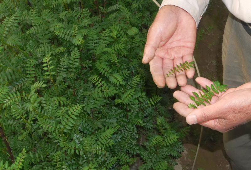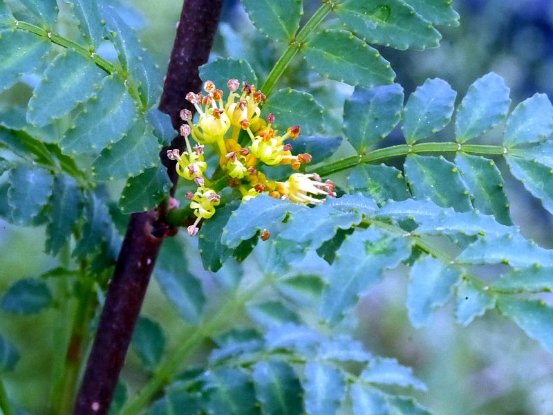 Zanthoxylum is a genus of some 250 species of deciduous and evergreen trees, shrubs and climbers in the citrus family, Rutaceae To my great surprise, I discovered that a plant I received from my friend Bo Blomkvist in Sweden as Zanthoxylum schinifolium and planted in July 2020 had numerous fruits on it. However, the taste was very similar to Japanese pepper, Zanthoxylum piperitum, and I believe it is this species I have as it has spines that grow in pairs (picture) whereas schinifolium has solitary spines. It is known as sanshō (山椒) in Japan and chopi (초피) in Korea.