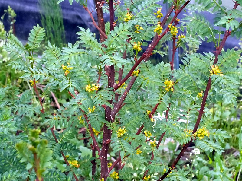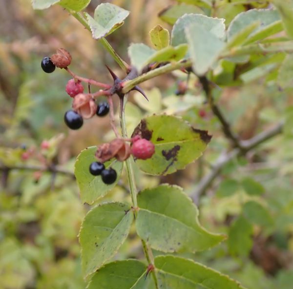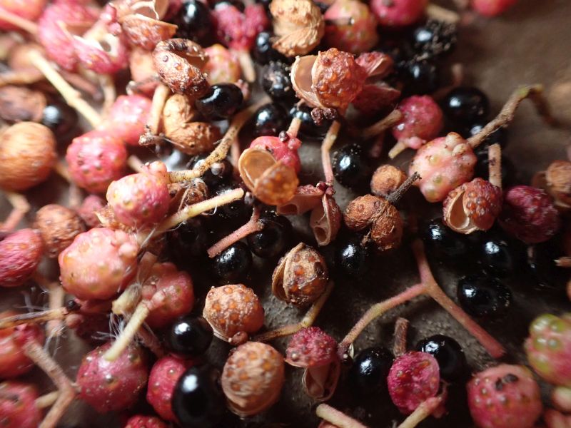 I have tried to grow Z. piperitum, including the thornless variety inerme, several times in the past (always from seed as there was no source of plants in Norway) but I have only once experienced a plant reaching the flowering stage for a couple of years, but no fruits developed, subsequently dying. I’ve also tried other species such as Zanthoxylum americanum and Z. simulans, but they also died in the winter. This plant is the only surviving one in my garden. I was surprised to find fruits as sources I’d read say that Z. piperitum is reliably dioecious, i.e, it has separate male and female plants. On the other hand, some species such as Z. schinifolium are sometimes monoecious or hermaphroditic. I note though that our friends at the Balkan Ecology Project have also found it to be hermaphroditic; see https://www.balkep.org/zanthoxylum-piperitum.html