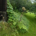 Lilies and an unusual looking rhubarb with lovage (løpstikke) and horseradish (pepperrot) behind