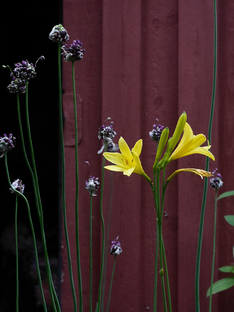 Hemerocallis lilioasphodelus (from seed sown in 2004) is a good midsummer flowering species, here together with Allium scorodoprasum, possibly the Vikings’ garlic (garlic = geirlauk which means “spear onion”)