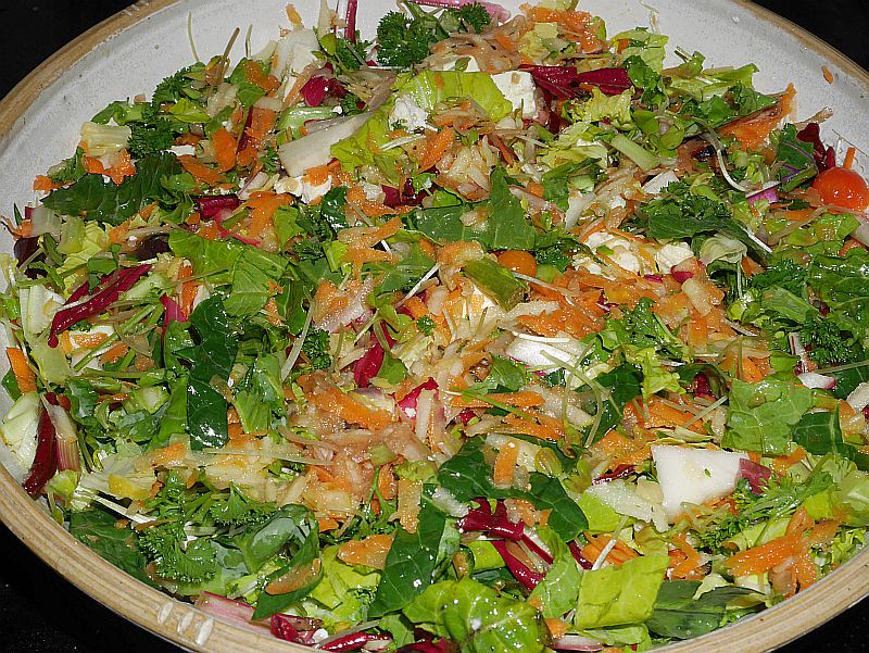 Nice salad! I must say it is very inspiring to read about your year-round edimentals; there seems always to be something to harvest in Malvik! Good to hear that some of it is indeed stored