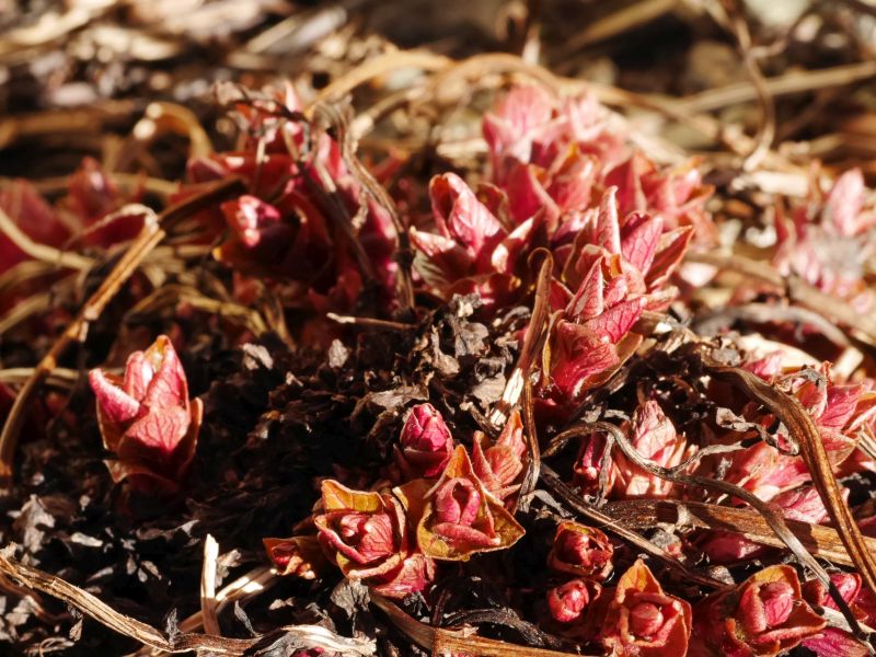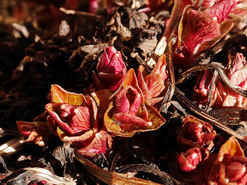 Hablitzia tamnoides (stjernemelde) is a pretty tough plant! These plants in a bucket have been like this exposed to this colder than average winter, totally frozen for probably 3 months and exposed to the swings in temperature as not buried in the insulating soil. Now waterlogged as the temperature has increased, frozen still lower down. I’m impressed that it has still managed to sprout.