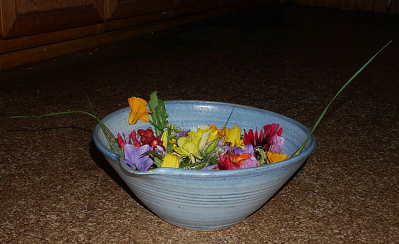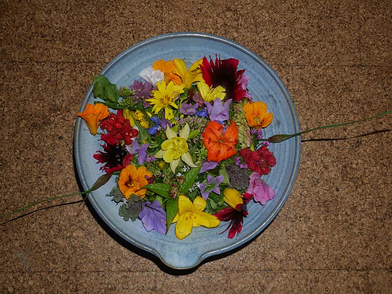To celebrate, the students of the PDC course I’m teaching on in Hurdal this week made a 15 species salad with the number 15 written in flowers: