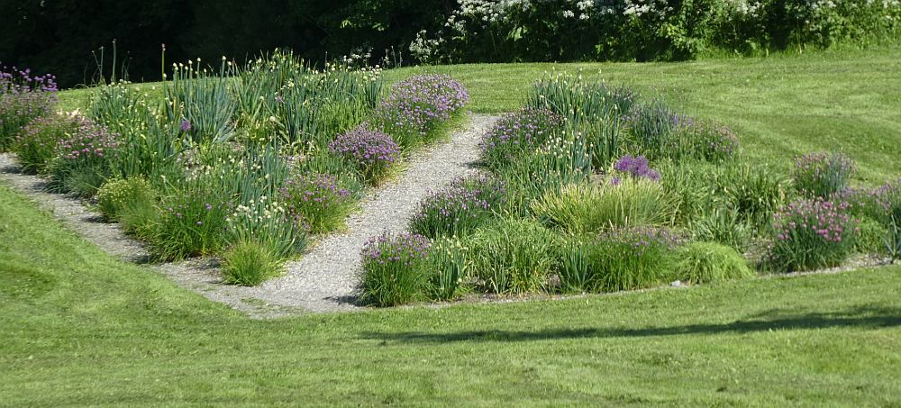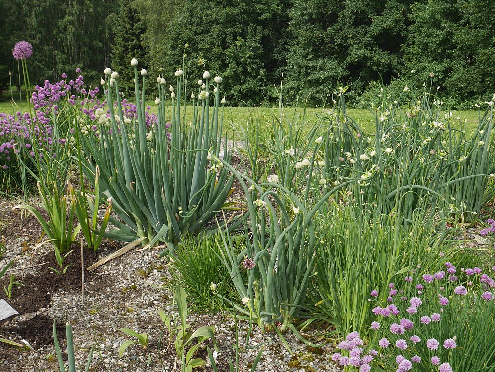 The Allium garden at the Ringve Botanical Garden (Chicago) in Trondheim contains a collection of old Norwegian onions used for food from all over Norway including Allium fistulosum (Welsh onion), A. x proliferum (Egyptian and Catawissa onions), A. oleraceum, A. vineale, A. ursinum, A. scorodoprasum and A.victorialis (the last four are wild or naturalised species that have been moved into gardens in the past for food and, in the case of ursinum and victorialis are currently being domesticated in a big way!