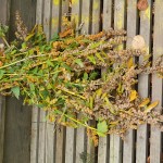 About 20 years ago I sowed some sweet chestnuts that I found in Southern England. One germinated and surpisingly to me it survived the first few winters. I therefore planted it out at the bottom of the garden. However, this area of the garden was overplanted and it became survival of the fittest (I didn’t really believe I would ever get chestnuts!)… It continued to grow slowly and survived one of our coldest winters ever around 2011 with only the tips freezing out (the whole root system down to the bed rock would have been frozen solid for 3-4 months). Seeing the exciting possibility of growing perhaps the furthest north chestnuts in the world, I gave the tree more space and planted a second tree (Marigoule) next to it (one tree can produce nuts, but yields are better with two). Then 3-4 weeks ago I noticed that the now about 5m high tree had produced a few male and female flowers which were opening at about the same time and I hope I now have a couple of chestnuts developing. However, it’s debatable if they will have time to mature in what has been a really cold summer here at 63.4 deg. N!