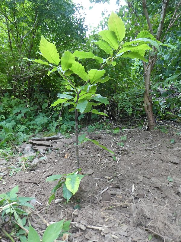 At the opening of my garden as a Permaculture LAND centre in the spring, I was given a present of two sweet chestnut trees, a grafted Marigoule tree and a seed propagated Marigoule. Sadly, the grafted tree died but I planted the other tree yesterday next to another sweet chestnut that I think came from a woodland in Southern England in the early 2000s and was planted here in 2008. It has to my great surprise survived even a really cold winter when its roots were frozen solid for almost 4 months and temperatures below -20C: