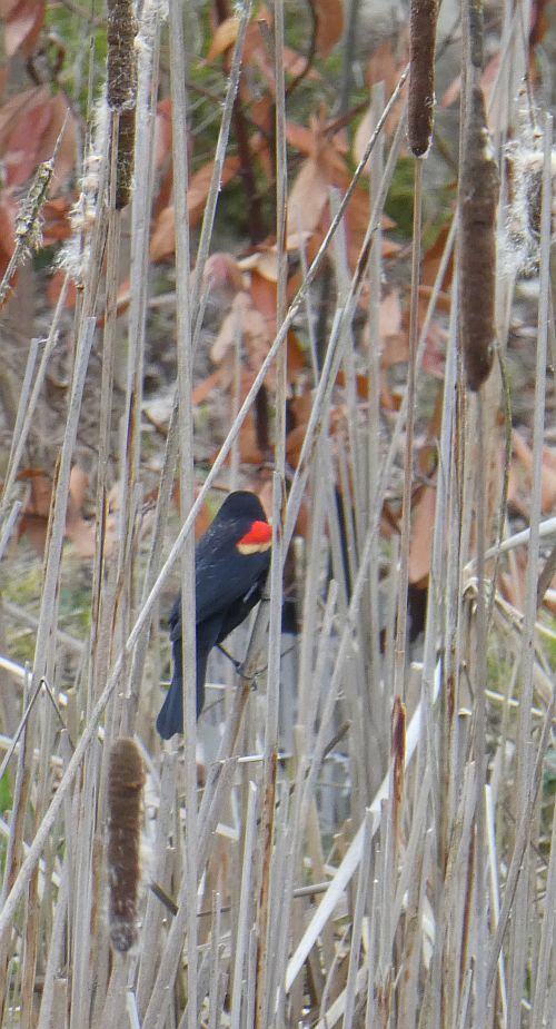 P1010493 April 16, 2017 500 × 925 Birds and mammals of BC Red-winged blackbird in cattails Optimized print or PDF