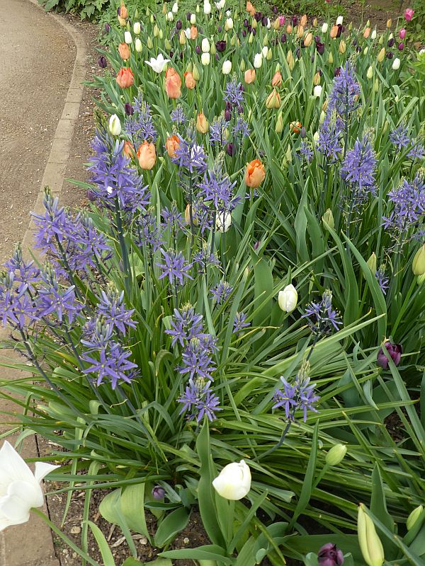 P1030551 May 10, 2017 600 × 800 Edimental spotting in the Oxford Botanical Garden Camassia and tulips Optimized print or PDF