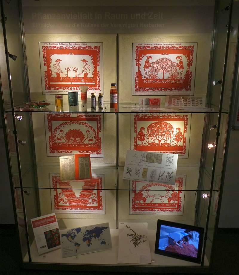 P1100832 April 23, 2018 800 × 921 With Mountain Gardener Joe Hollis in the Zurich Botanical Gardens We also visited the interesting library…ethnobotany is important at the University. This is a Goji (Lycium) display Optimized print or PDF