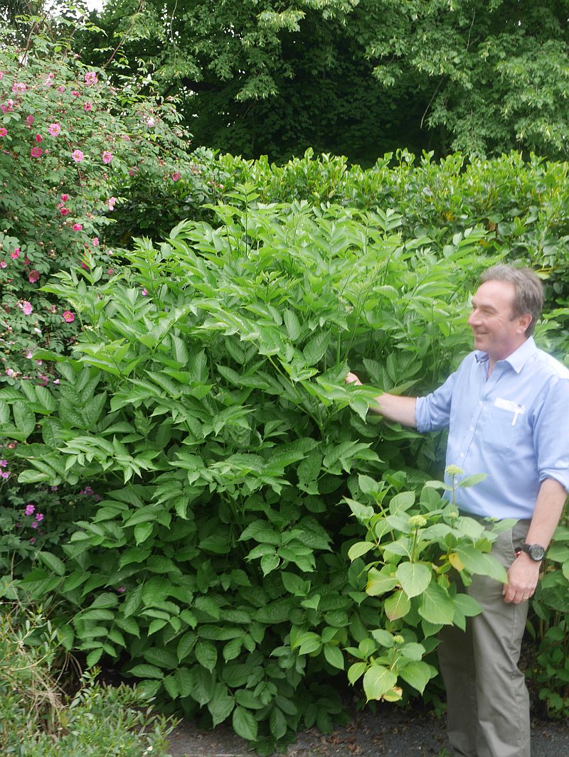 P1830959 June 20, 2018 800 × 1065 Mount Stewart …and Neil was proud to show me a fine udo (Aralia cordata)!! Optimized print or PDF
