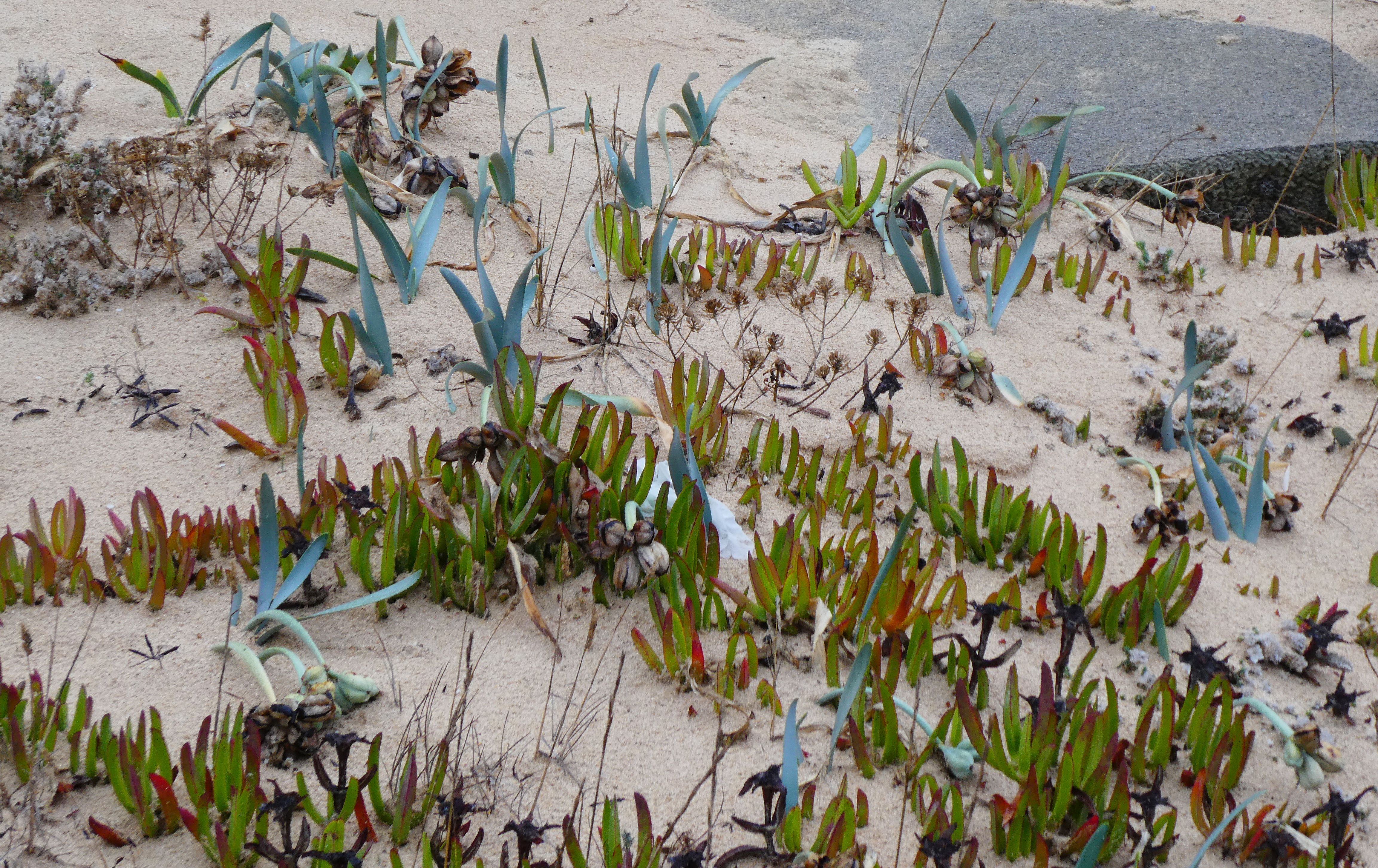 P1140199 November 3, 2018 4612 × 2908 Mostly edibles at Magoito Sea daffodil (narciso-das-areias): Pancratium maritimum with Hottentot Fig (Carpobrotus edulis) Optimized print or PDF