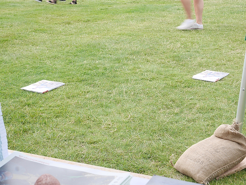 We tried different techniques to attract attention…the issue of Permaculture Magazine with Neil Young on the cover was being used here as bait to haul in the punters… Maddy Harland and Tim Harland: Mission accomplished…all the PMs went to good homes :)