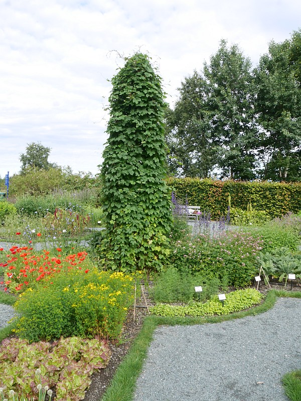 P1620272 July 27, 2016 600 × 800 Naturplanteskolen at Ringve Botanical Garden Hops / humle are the centrepiece of the garden Optimized print or PDF