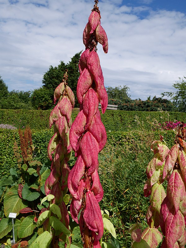 P1620348 July 27, 2016 600 × 800 Naturplanteskolen at Ringve Botanical Garden Rheum alexandrae in seed… do the leaf bracts protect the seed from rain? Optimized print or PDF