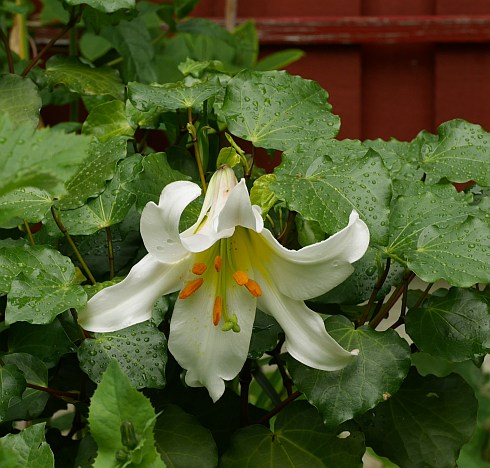 P1620766 August 3, 2016 490 × 468 Weekend garden pictures Lilium regale? growing up through a Macropiper excelsa from New Zealand! Optimized print or PDF