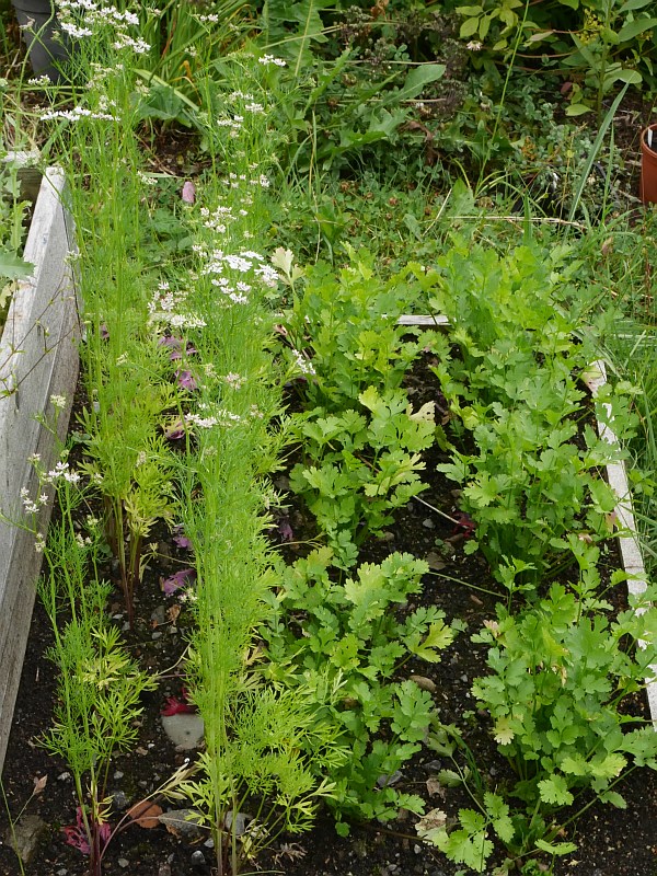P1620931 August 3, 2016 600 × 800 Weekend garden pictures Slow to bolt coriander cultivar “Calypso” (right) is the most bolt resistant variety I’ve grown. It’s bred in the UK. I just hope it’s not so late at bolting that seeds are not produced! Optimized print or PDF