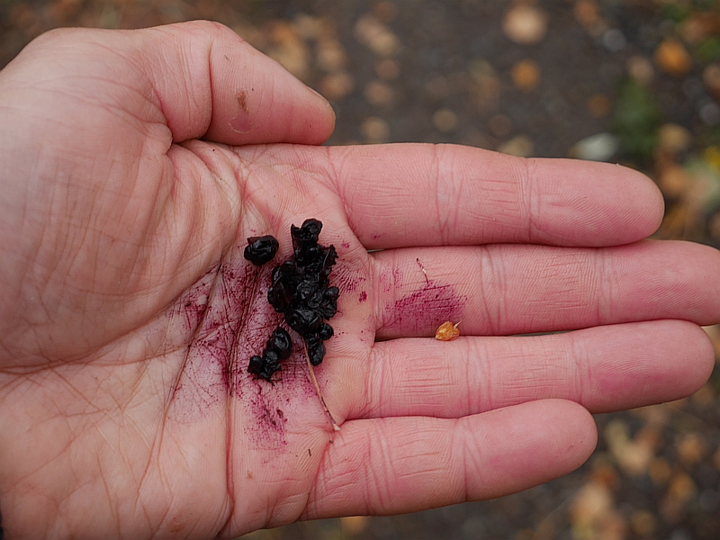 P1670654 October 30, 2016 800 × 600 Packing and sorting seed The seed pods of some forms of Allium wallichii (Sherpa onion) are inky, like this one, from Nepal, harvested today Optimized print or PDF