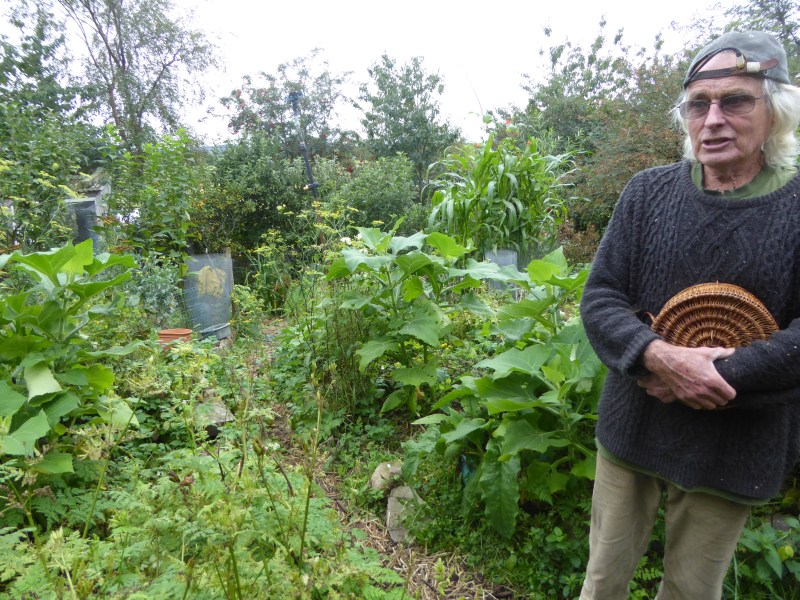 He told me that most people that visit consider his garden as a bit of a mess and that he’s lost control! However, he had created the garden for himself and wildlife. He told me that he enjoyed my visit as I could SEE! Yacon on either side of the path with sweet cicely , fennel , Jerusalem artichokes, sweet cirn and various edible bushes and trees!