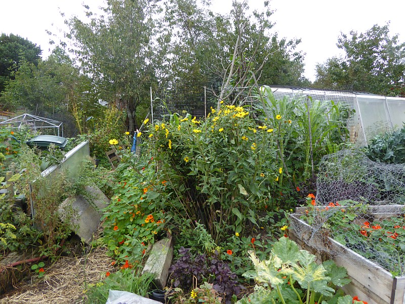 P1090170 November 10, 2016 800 × 600 Findhorn’s Edible Woodland Garden Jerusalem artichoke in full flower Optimized print or PDF