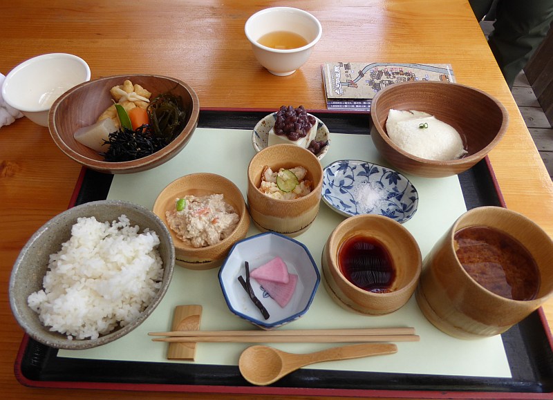 We also spent some time at Sanshu Asuke Yashiki, a working traditional crafts museum next to Mt. Iimori and had a gourmet lunch at the Kunputei restaurant overlooking the river gorge (third album below). This restaurant specialises on tofu dishes, handmade every morning and we ate konjac for the first time here (Amorphophallus konjac) (see this blog post for my experience with growing konjac: http://www.edimentals.com/blog/?page_id=845)